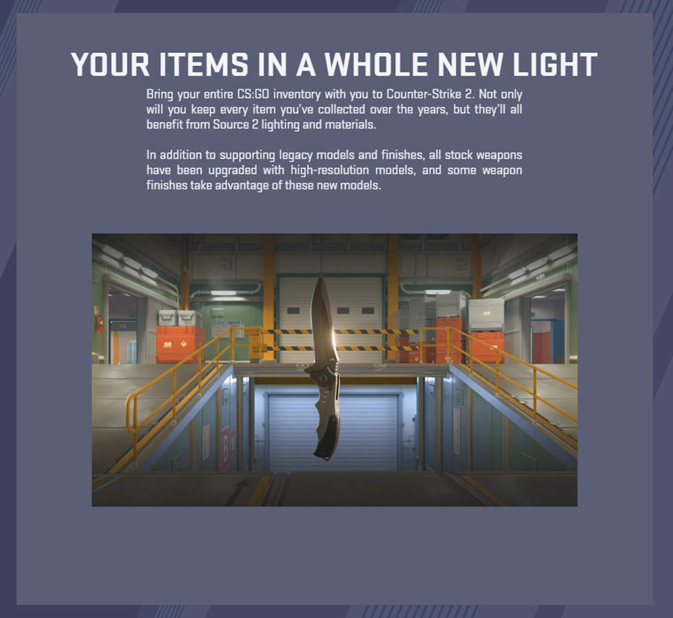 Valve’s explanation of the CS:GO skins’ move to CS2 on the official Counter-Strike 2 website.